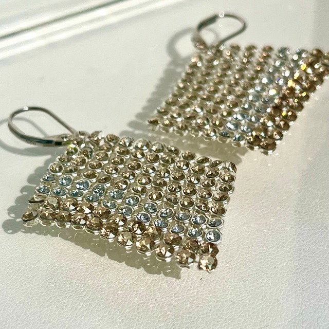 Swarovski社製クリスタルメッシュ使用 スリーカラースクエアピアス
