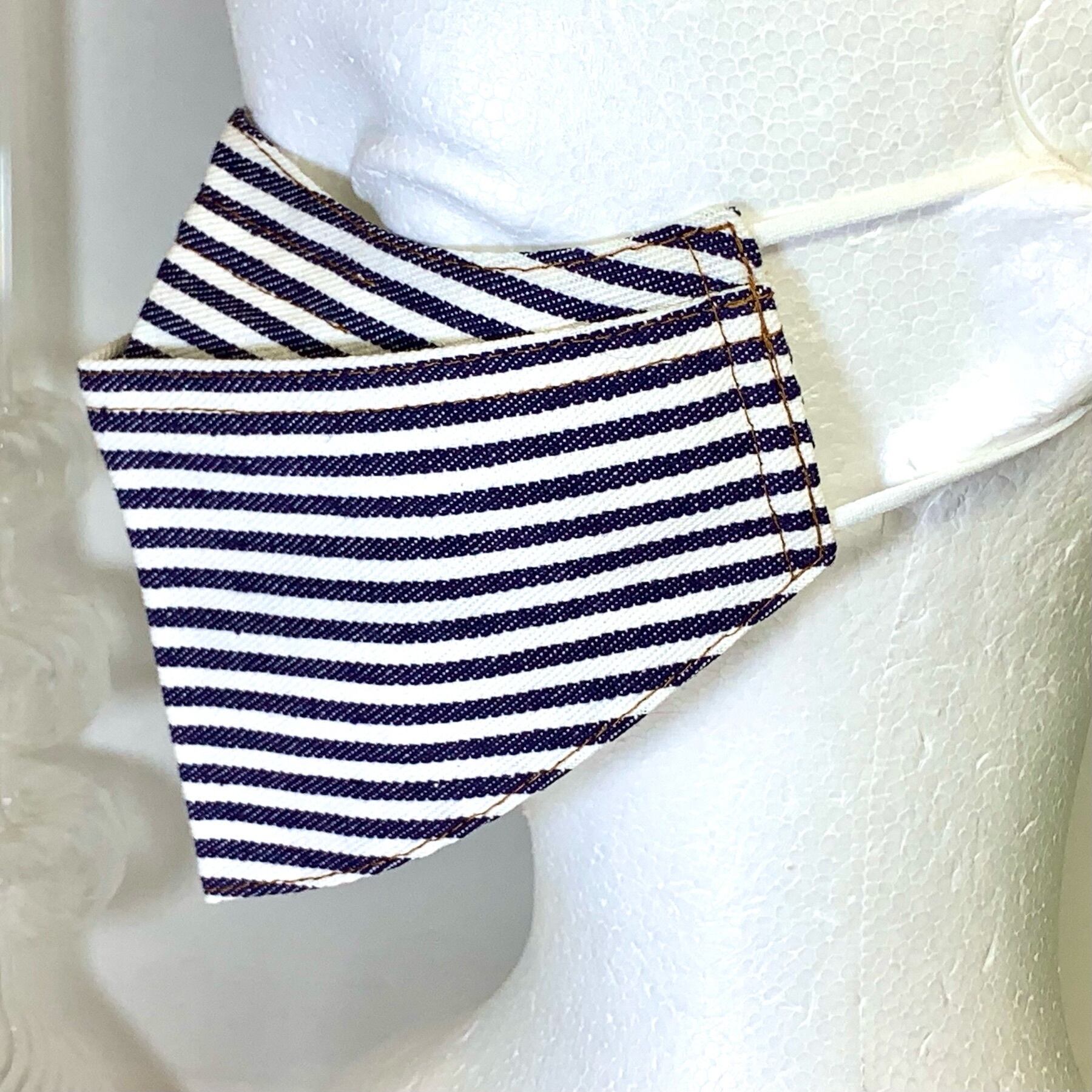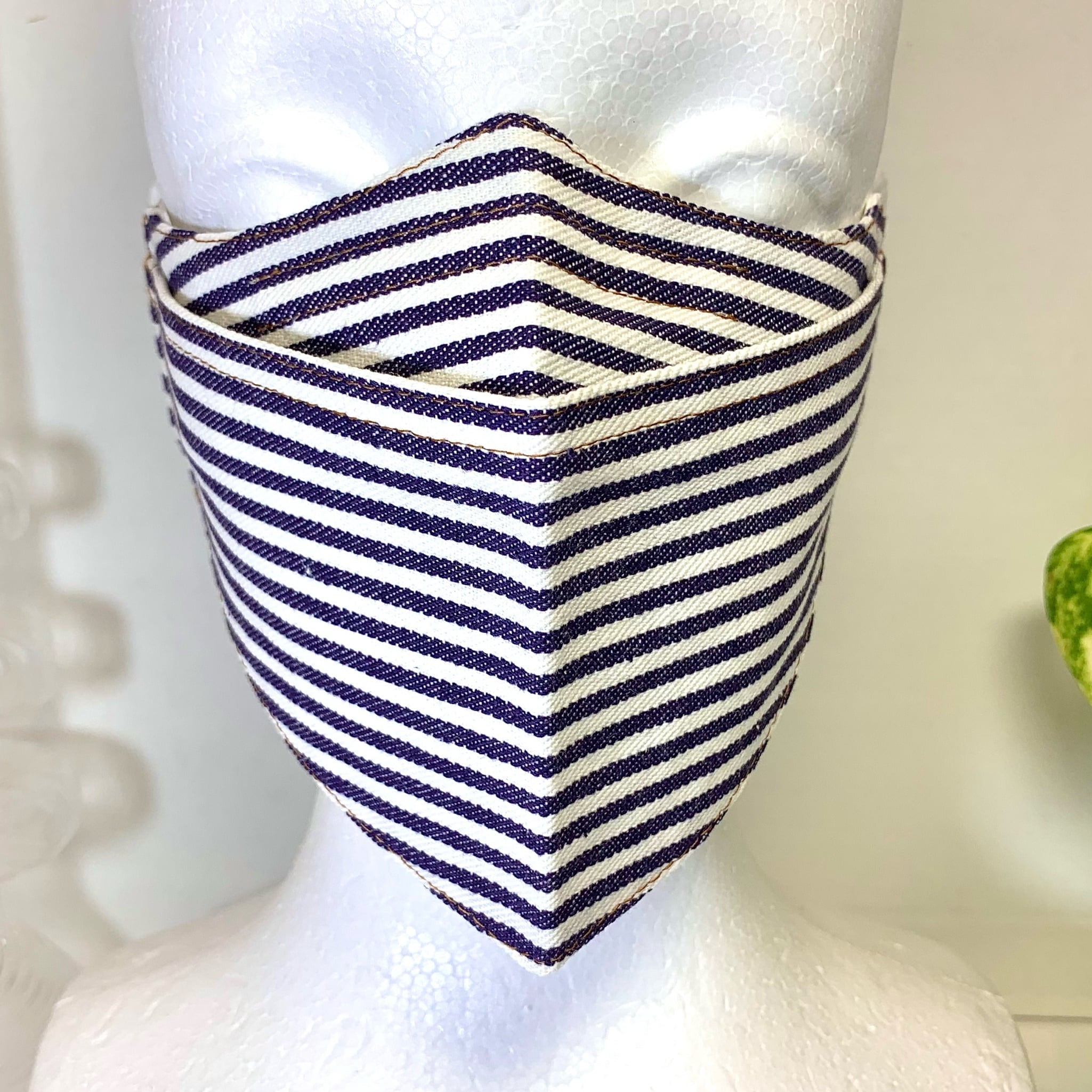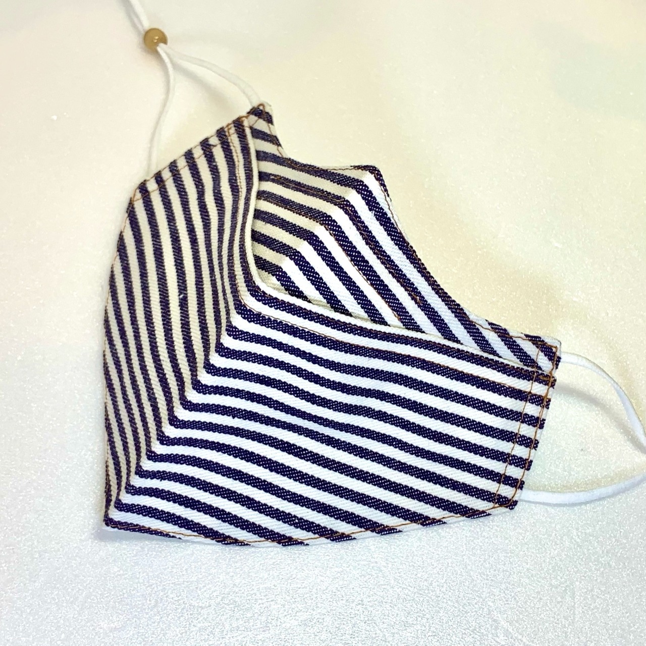 生地は岡山産ストライプ柄がおしゃれなヒッコリーデニム 使用。