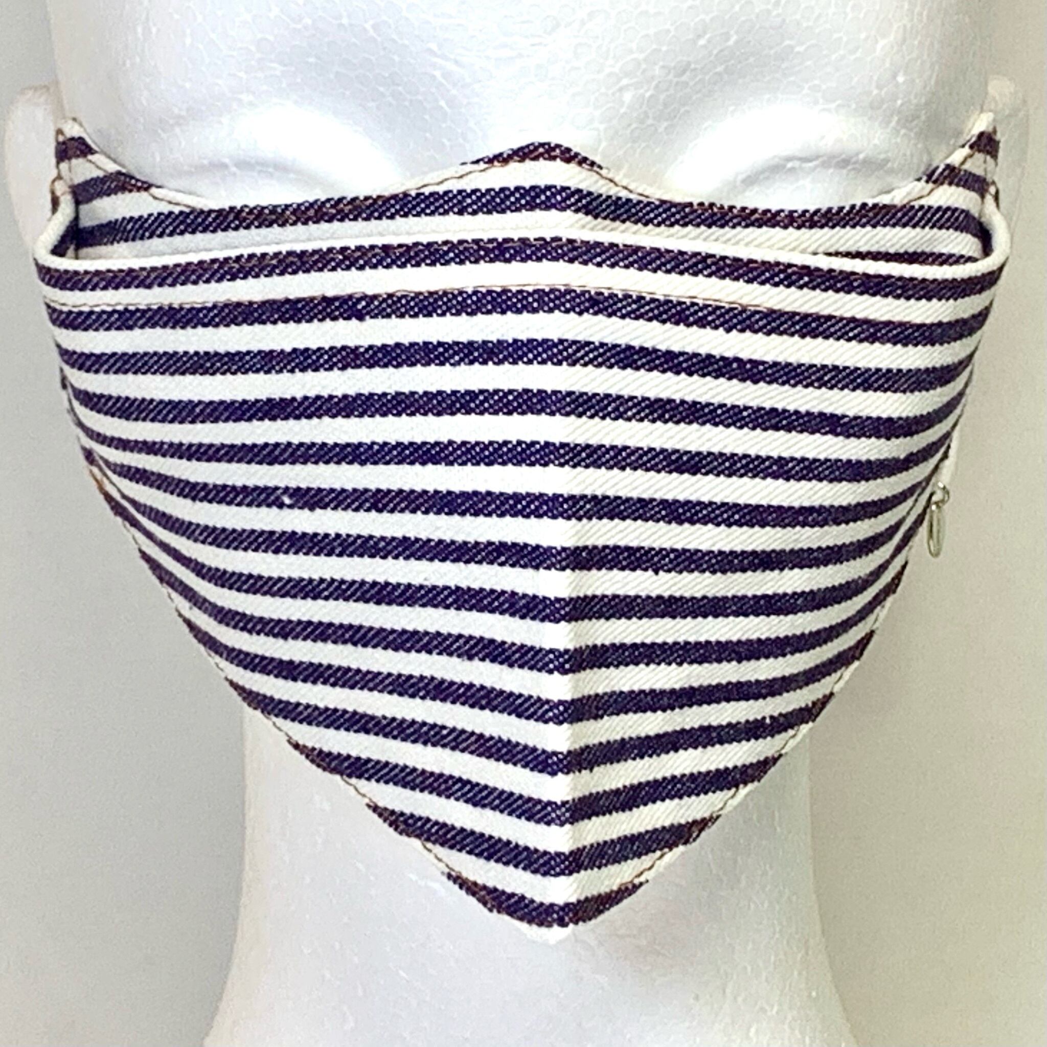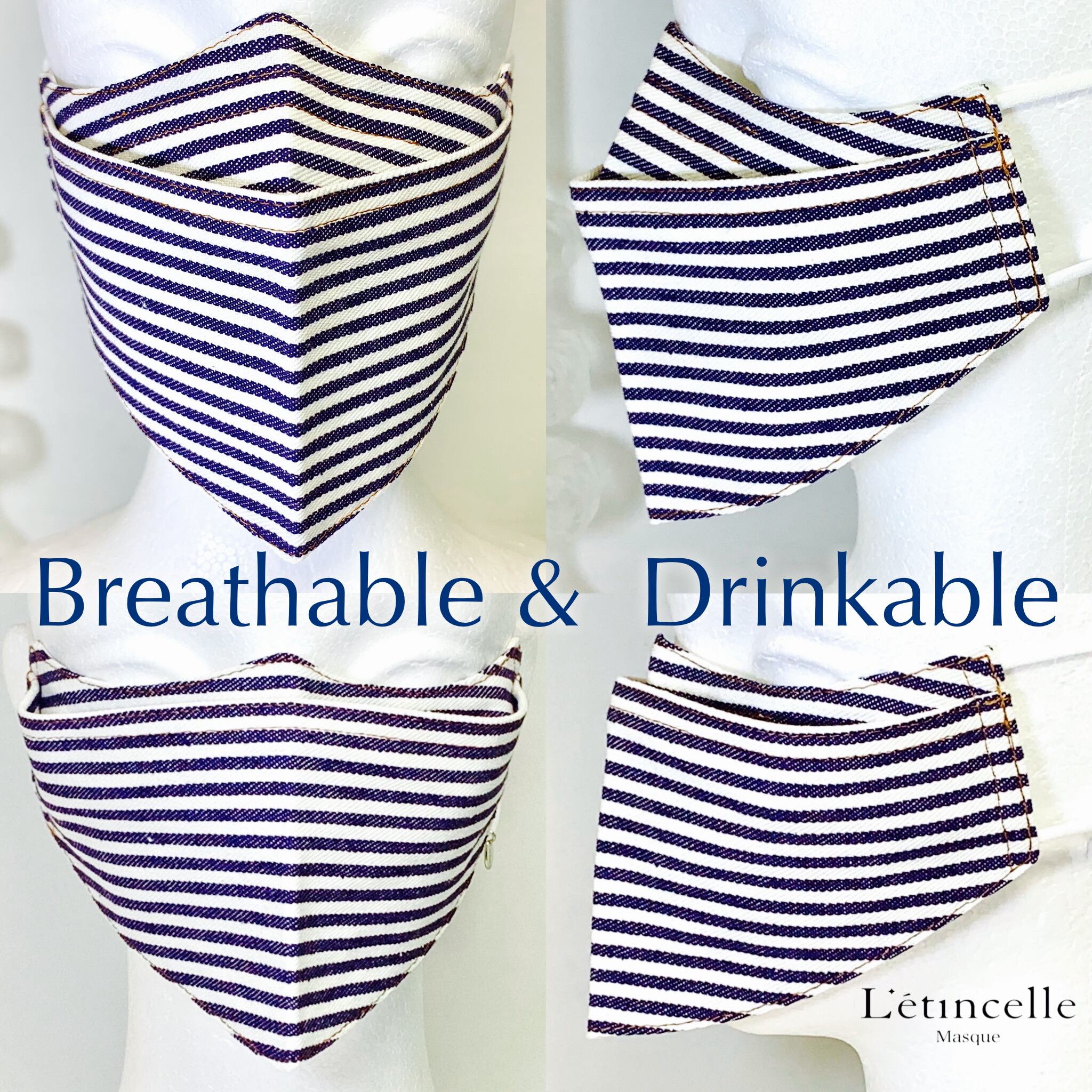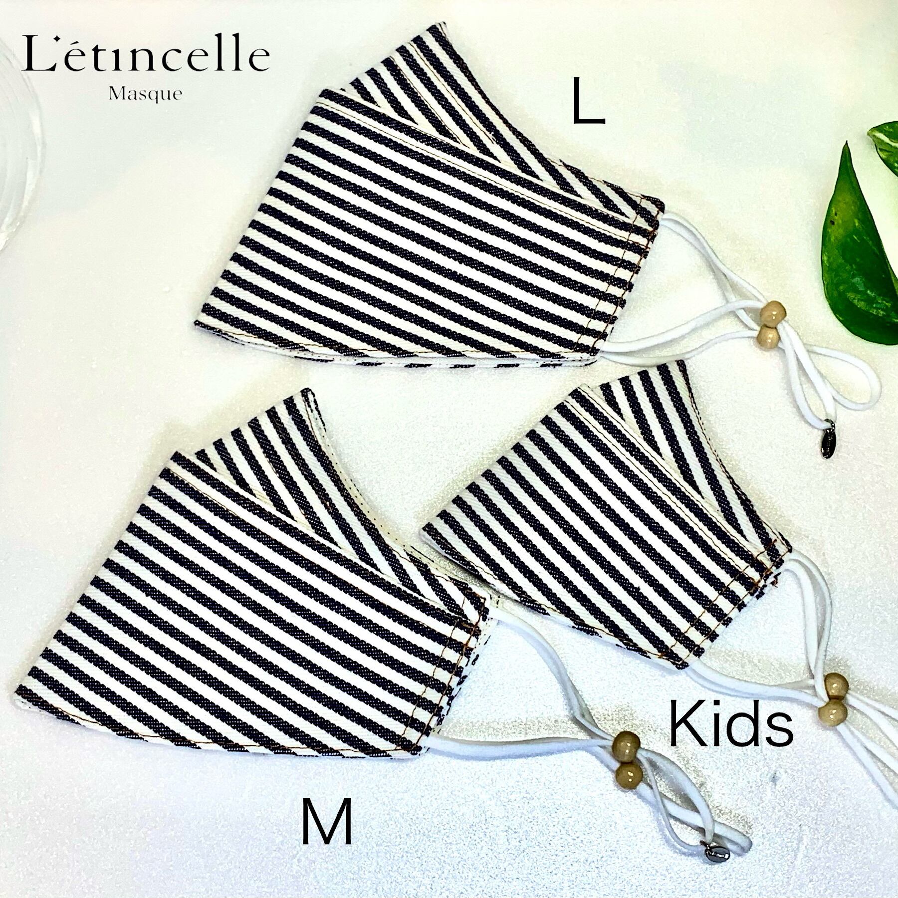 生地は岡山産ストライプ柄がおしゃれなヒッコリーデニム 使用。